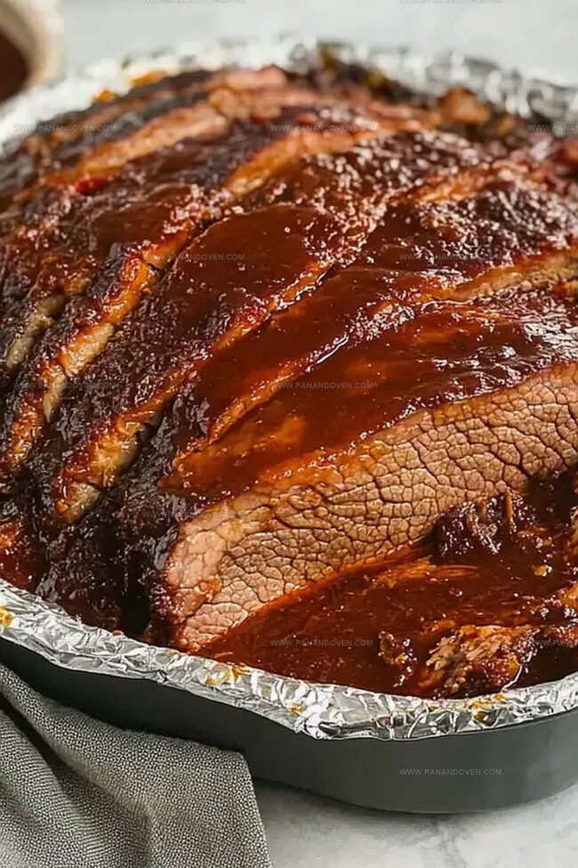 - Generously pour the sauce over the brisket, using a brush or spoon to coat every surface, ensuring maximum flavor penetration.