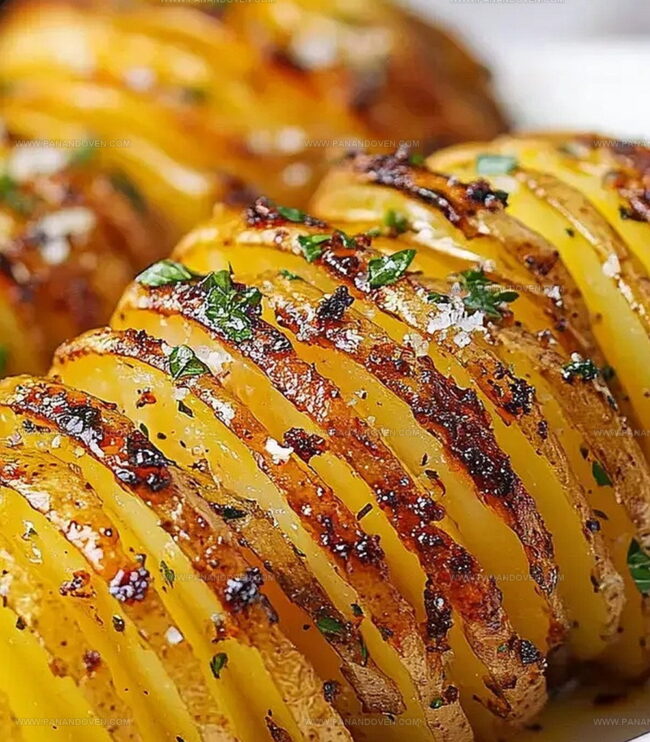 Crispy, golden potatoes with an accordion-style cut offer a delightful twist on classic potato sides.