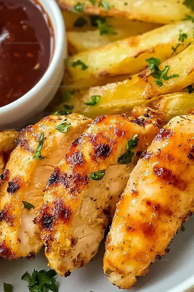 - Transfer cooked chicken tenders to a serving plate. Garnish with fresh chopped parsley and serve alongside tangy BBQ sauce for dipping.