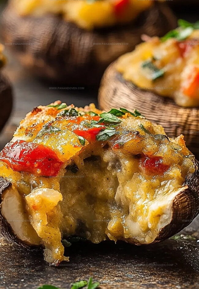 Look for golden-brown edges and a slightly crispy top. The filling should be hot and cheese melted. Mushrooms will appear slightly shrunken and firm when done.