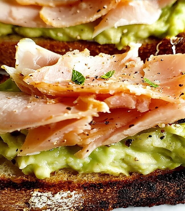 - Arrange delicate turkey slices atop the avocado spread, ensuring complete coverage for a balanced bite.