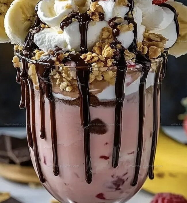Creamy banana split milkshakes blend classic ice cream parlor flavors into a refreshing summer treat. Chocolate, strawberry, and vanilla notes combine with fresh bananas, whipped cream, and sprinkles for a nostalgic dessert you’ll savor.