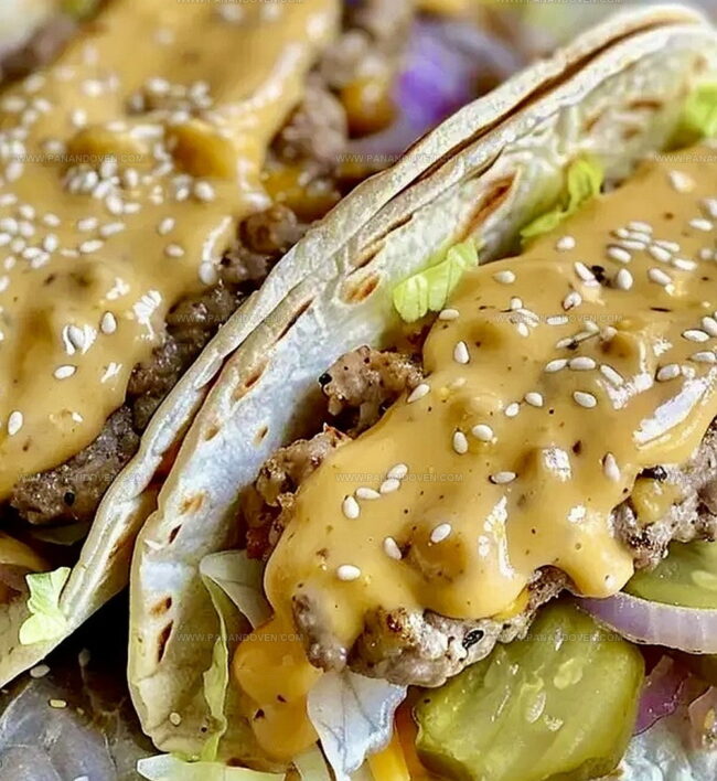- Optional: Sprinkle sesame seeds across the tacos for an authentic Big Mac appearance.