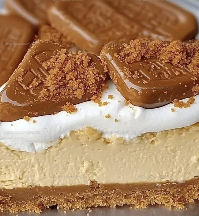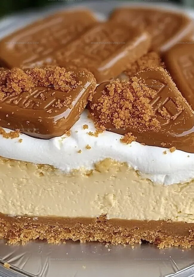 - For an artistic touch, drizzle warm Biscoff cookie spread across the cheesecake surface. Use a knife to create elegant swirling patterns, generating a marbled visual effect.