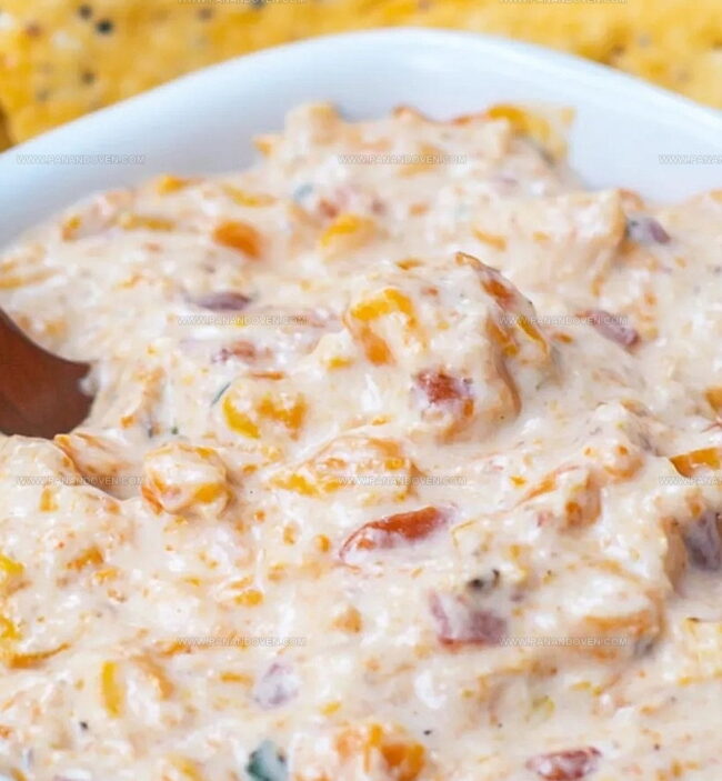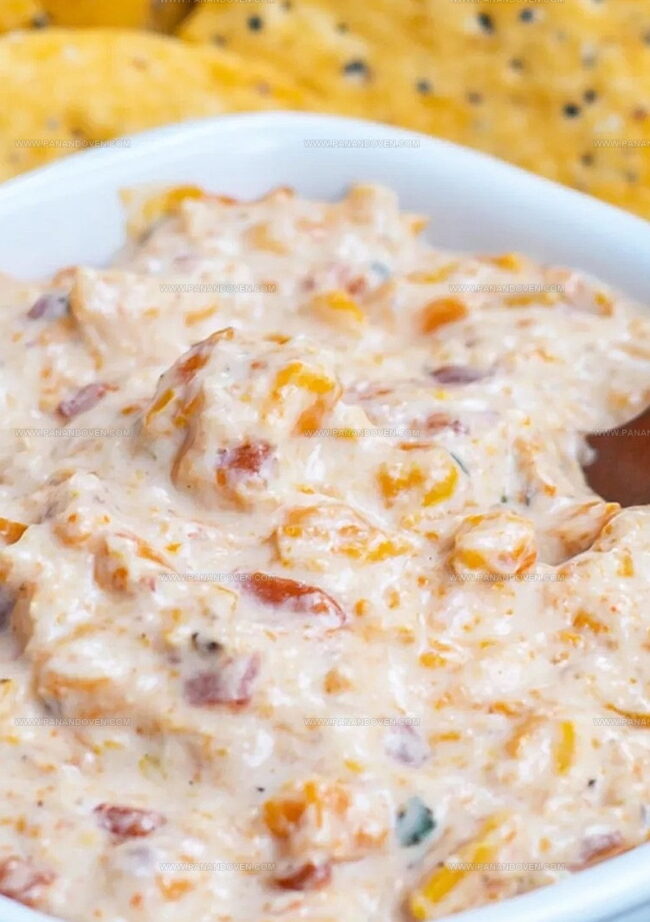 - Transfer the dip to a serving dish and accompany with an assortment of dipping options such as crisp tortilla chips, fresh vegetable sticks, or crackers for a delightful and versatile appetizer.