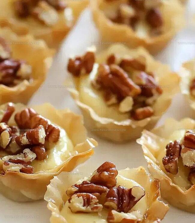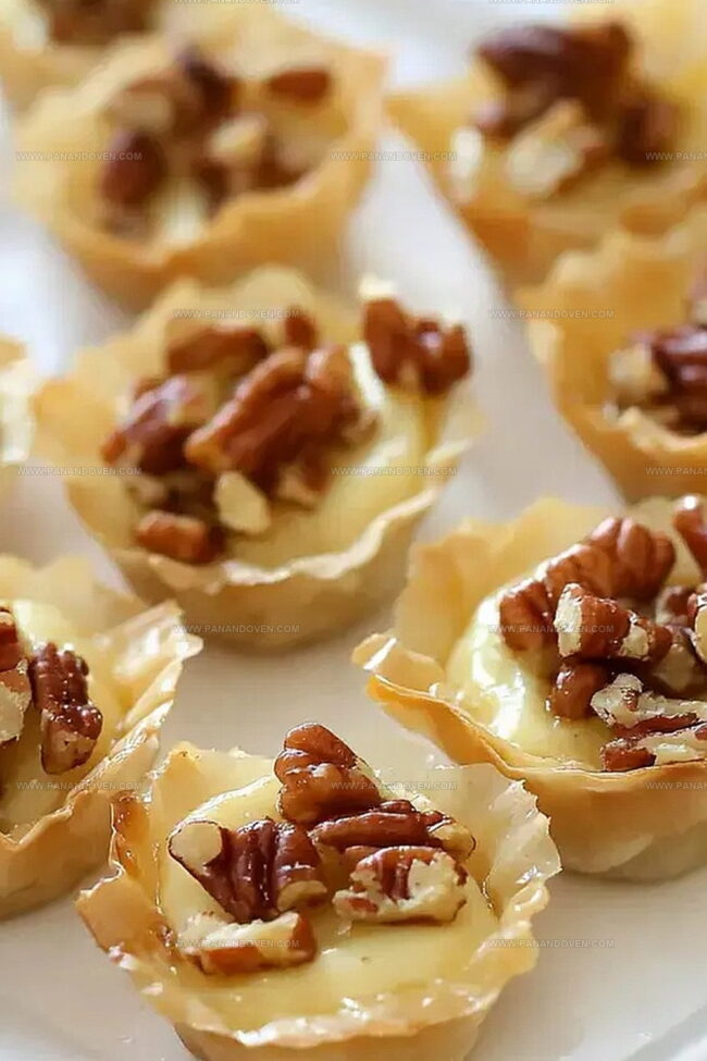 - Gently position one brie cube into each delicate phyllo shell, ensuring even distribution.