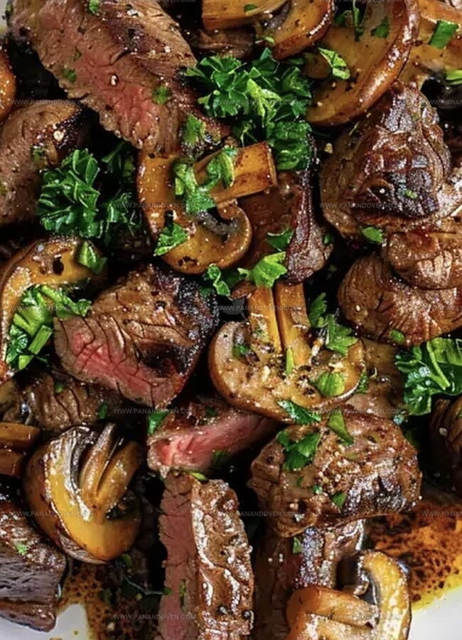 - Immediately transfer cooked steak bites and mushrooms to a serving dish, gently folding melted butter throughout to enhance richness and flavor.