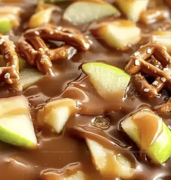 - Evenly distribute caramel-apple mixture over pretzel layer, creating a consistent coating that covers all surfaces.