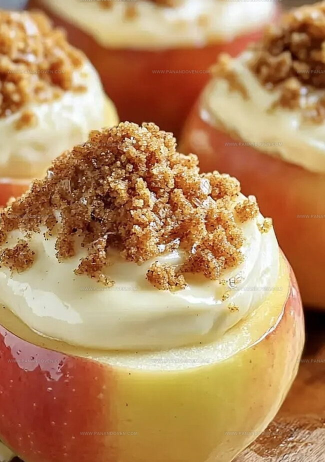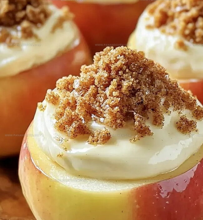 Crisp, ripe apples become the perfect vessel for a rich, creamy cheesecake filling that melts in your mouth.