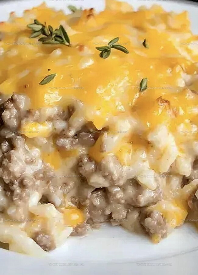Cheesy hamburger rice casserole merges hearty ground beef with creamy rice and melted cheese for a comforting family meal. Midwestern home cooks appreciate this simple, satisfying dinner that brings warmth to any table.