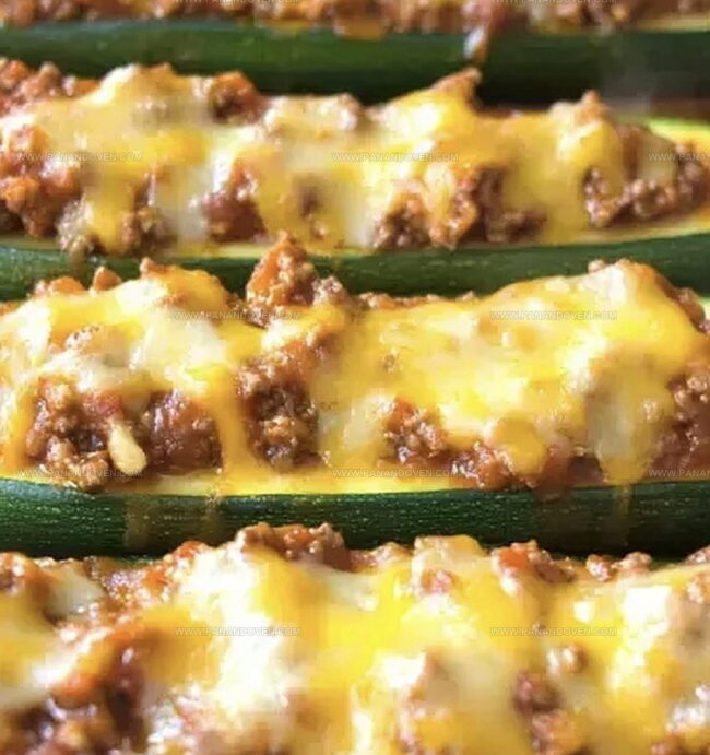 - Generously fill each zucchini boat with the seasoned meat mixture, ensuring even distribution. Sprinkle shredded cheese over the top of each boat.