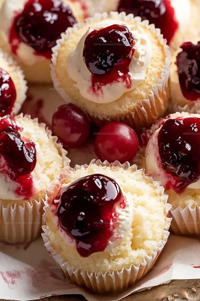 Each cupcake promises a burst of fruity flavor nestled within a velvety cheesecake base.