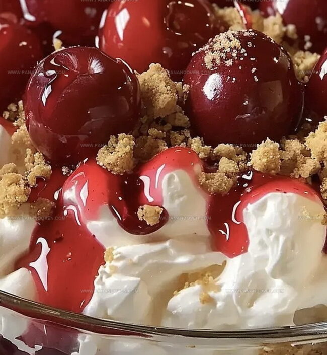 - Sprinkle remaining graham cracker crumble over the cherry layer, providing a delightful textural contrast.