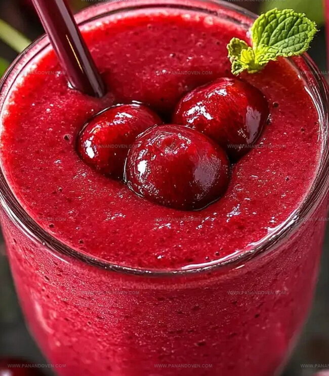 - Transfer the vibrant crimson smoothie into chilled serving glasses, garnishing with fresh whole cherries and delicate mint leaves for an elegant presentation.
