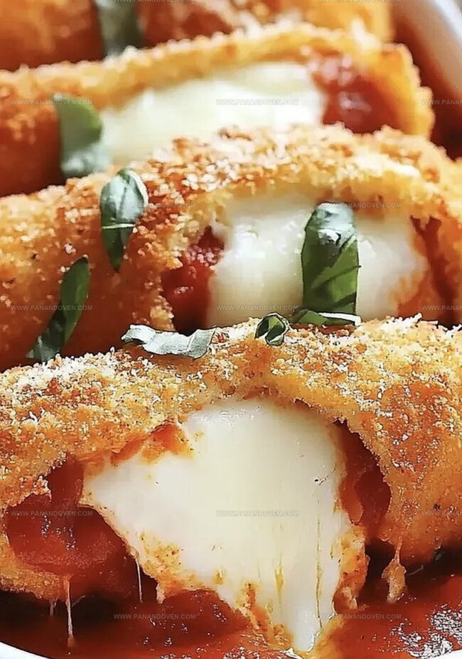 - Spread half the marinara sauce across the bottom of a baking dish. Arrange fried chicken rolls within the sauce, then cover with remaining marinara and sprinkle additional mozzarella slices on top.