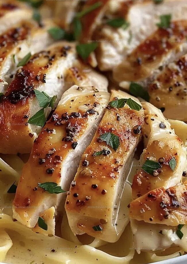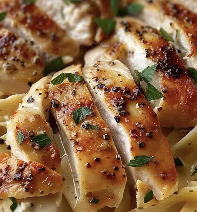 Tender chicken pieces nestle perfectly alongside silky, butter-coated pasta that melts in your mouth.