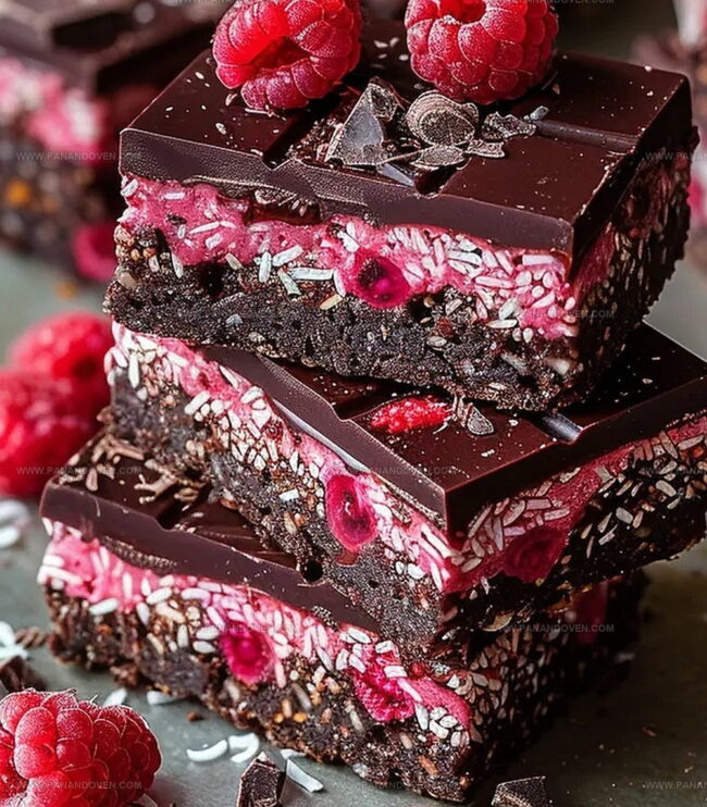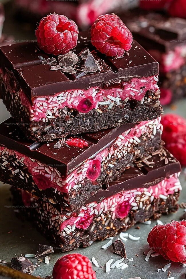 Chocolate raspberry coconut slices blend rich cocoa with tangy berries and tropical coconut in a delightful dessert. Sweet layers create a harmonious treat you can savor with each indulgent bite.