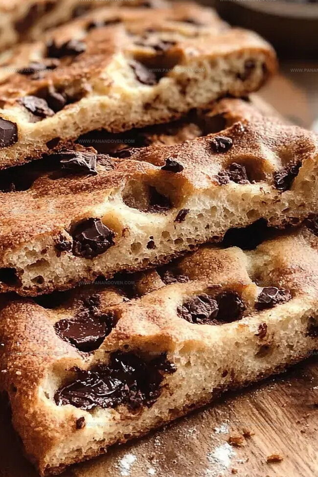 Luscious chocolate sourdough focaccia bread combines rich dark chocolate with classic Italian bread techniques. Rustic Mediterranean flavors merge with sweet cocoa notes, creating a delightful sensory experience you will savor with each indulgent bite.