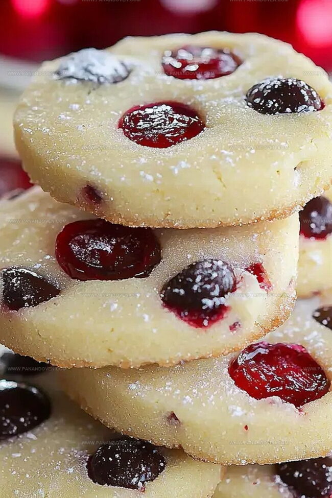 The bright cherry specks add a cheerful pop of color and tangy sweetness to traditional shortbread.