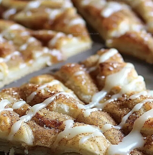 - Drizzle the prepared glaze over the warm cinnamon-sugar crescents, creating an attractive zigzag pattern.