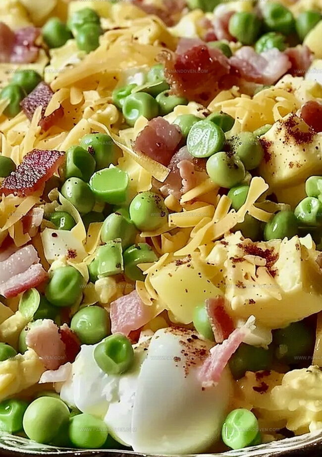 Enjoy the creamy, tangy, and utterly delicious pea salad that screams comfort and love.