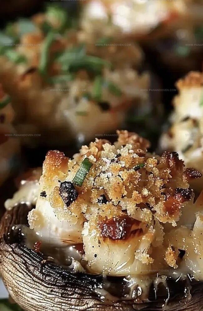 Tender mushroom caps become delectable vessels for succulent crab meat and creamy cheese.