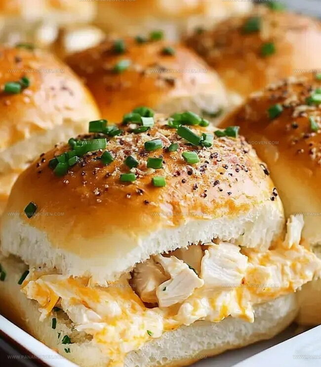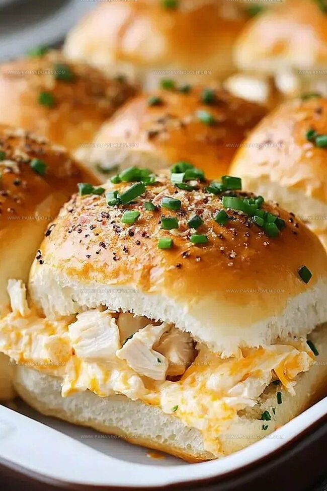 The creamy, zesty chicken mixture melts perfectly between soft, sweet rolls that promise an irresistible bite.