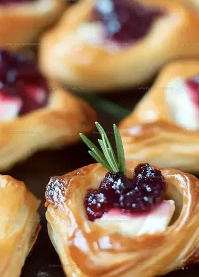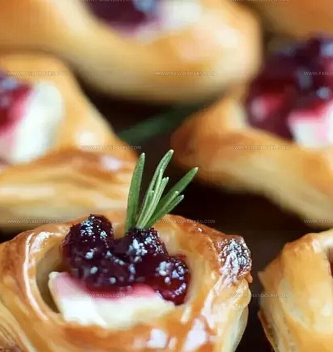 These bite-sized appetizers combine creamy cheese with tangy fruit in a perfect pastry package.