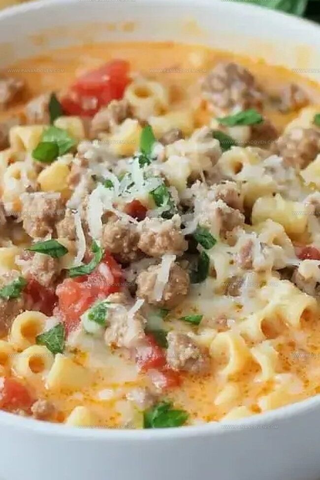Comfort arrives in a steaming bowl of hearty creamy sausage soup that promises warmth and satisfaction.