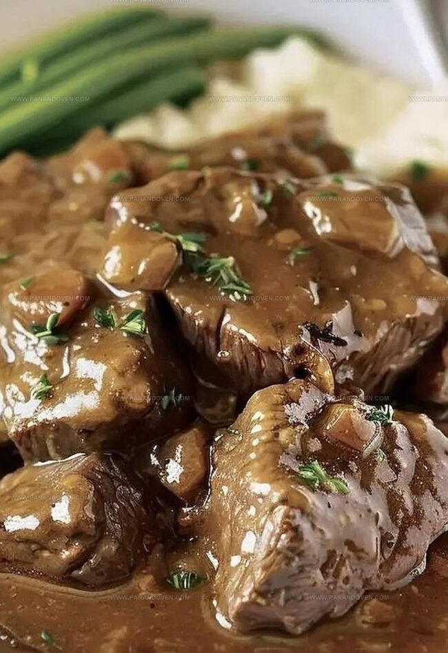 - Nestle cubed steaks into the gravy mixture, ensuring each piece is thoroughly coated with the liquid seasoning.