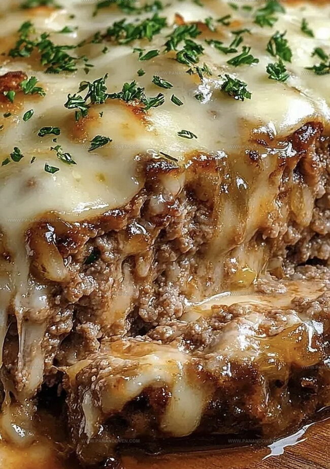 Hearty French onion beefloaf combines classic comfort with slow-cooked elegance, blending rich beef and caramelized onions. Swiss cheese melts luxuriously over this savory dish, promising a satisfying meal you’ll savor to the last bite.