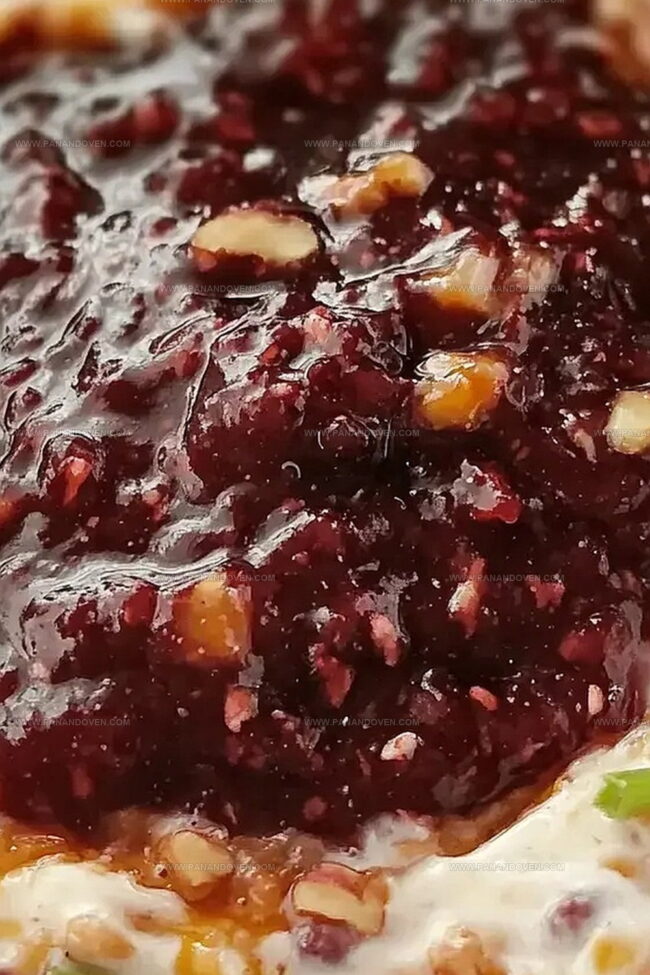 - Just before serving, ensure the dip is cool and set, with preserves creating a vibrant, glossy top layer.