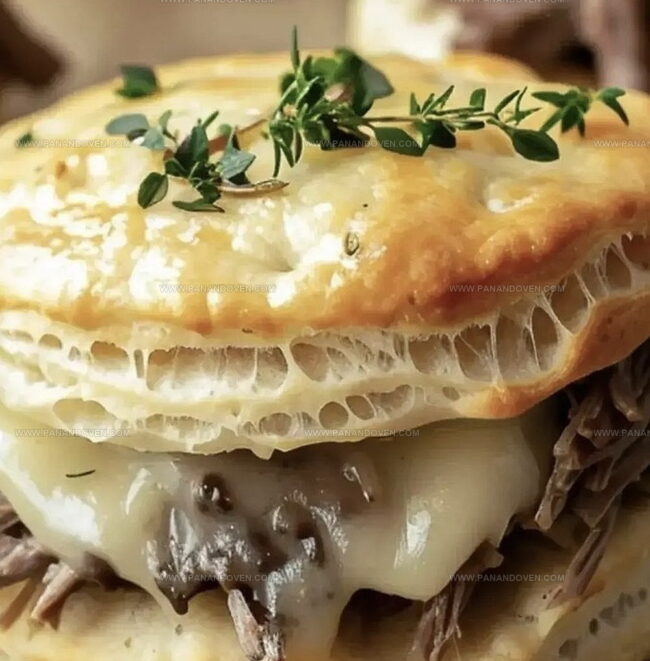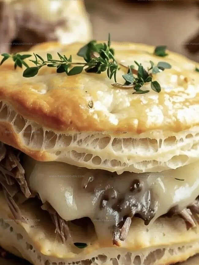 Refrigerated buttermilk biscuits are ideal because they’re easy to separate and create perfect layers for stuffing with roast beef and cheese.