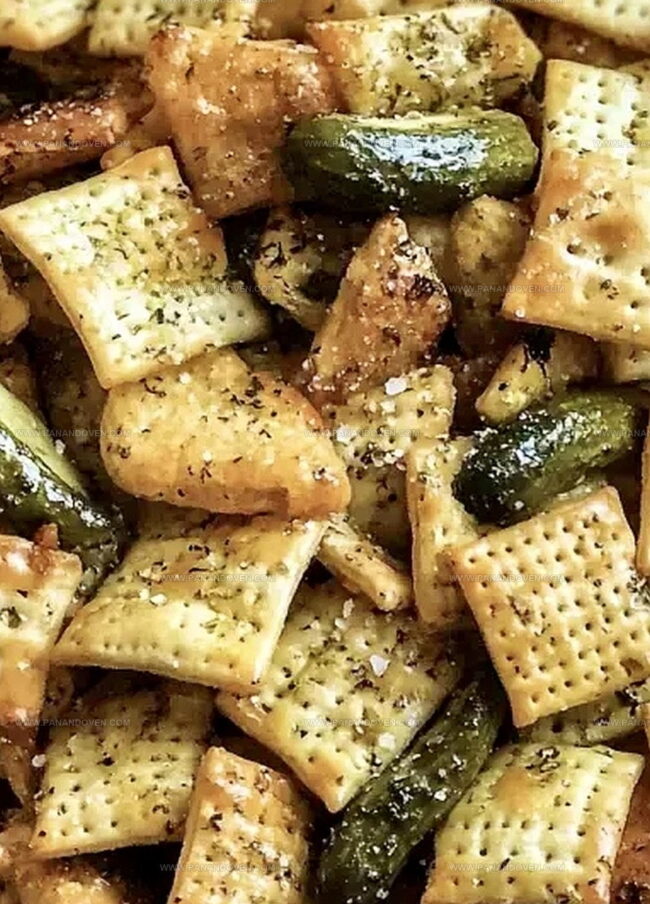 Zesty dill pickle Chex mix elevates snack time with tangy, crunchy goodness. Crisp cereal, pretzels, and seasonings combine for an irresistible treat you can’t stop munching.