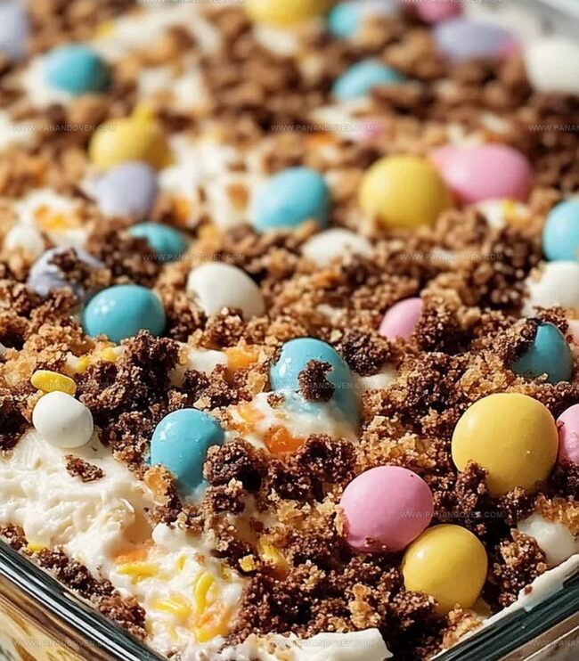 Creamy Easter dirt cake brings layers of chocolatey delight to family gatherings. Rich pudding, crushed cookies, and playful gummy worms create a whimsical treat you’ll savor with pure joy.