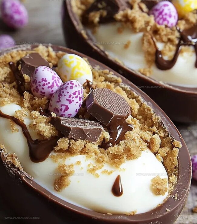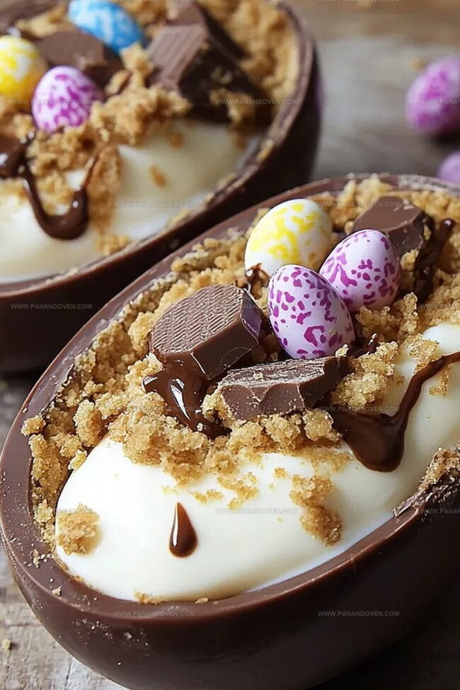 - Enhance the presentation by decorating with mini chocolate eggs, additional cookie crumbs, and a delicate drizzle of melted chocolate. Refrigerate for minimum 2 hours to allow complete setting and optimal flavor development before serving.