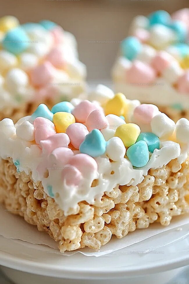 Pastel-hued candies add a playful touch to these adorable desserts.