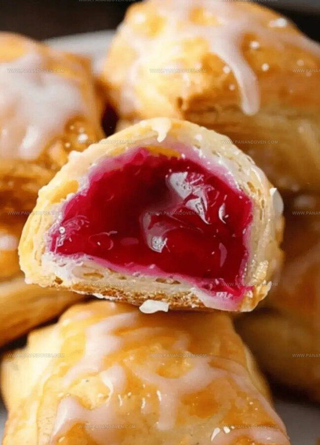 - Drizzle the prepared glaze across the warm cherry pie bites, allowing it to cascade naturally over the pastry’s surface for an elegant finish.