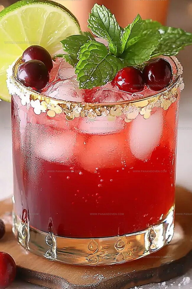 Artfully garnish your mocktail with whole cranberries, sprigs of fresh mint, and delicate lime wedges.