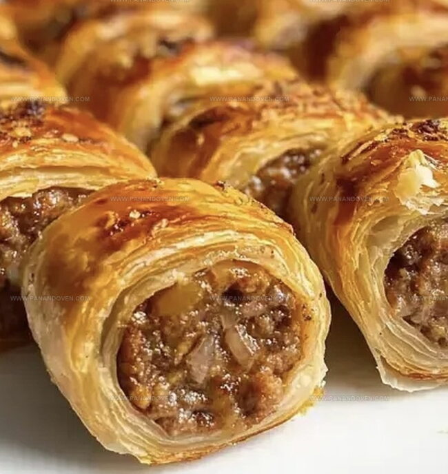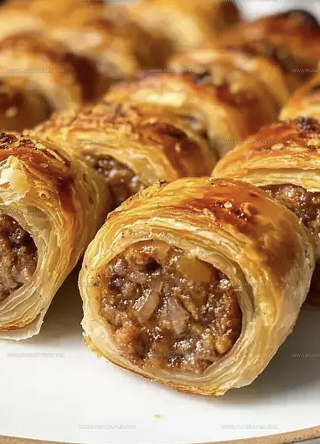 savory sausage meat blended with caramelized onions creates a mouthwatering filling that elevates this classic pastry.