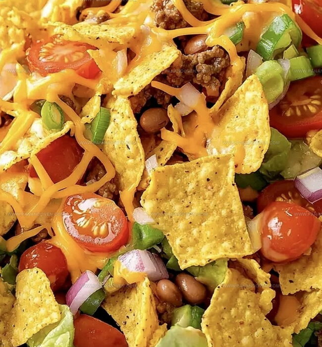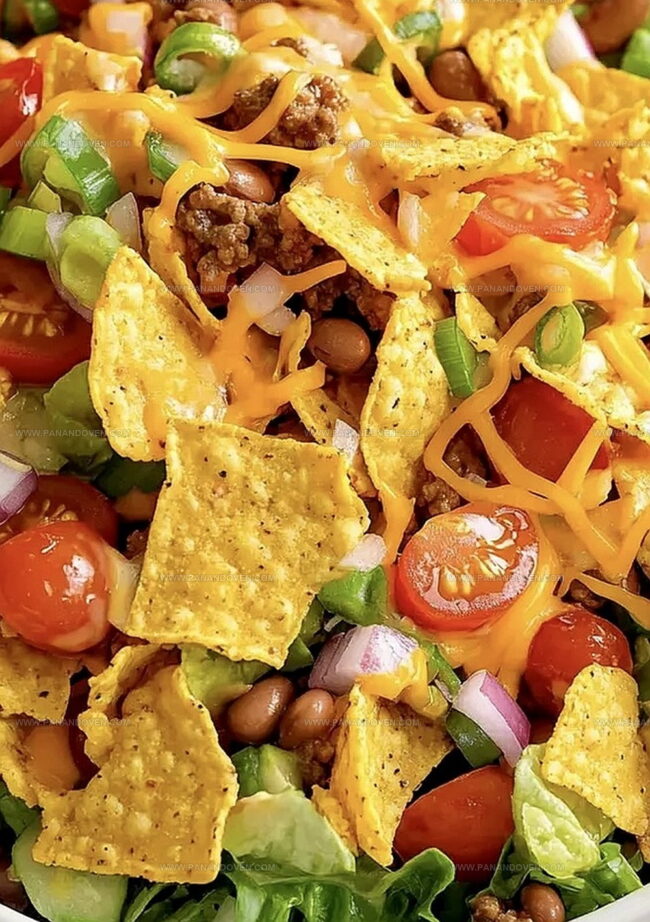 Crisp and colorful, this Frito taco salad recipe bursts with zesty Tex-Mex flavors that dance across your plate.