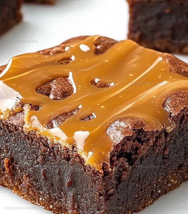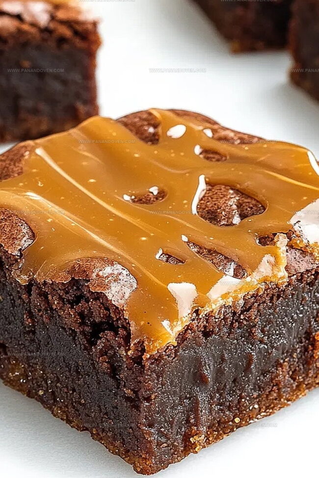 Silky caramel ribbons dance through dense, fudgy brownie layers.