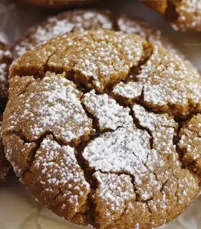 Festive gingerbread crinkle cookies bring holiday cheer with their delightful spiced charm. Powdered sugar coating creates a beautiful contrast against rich molasses-infused dough, making these treats perfect for seasonal celebrations.