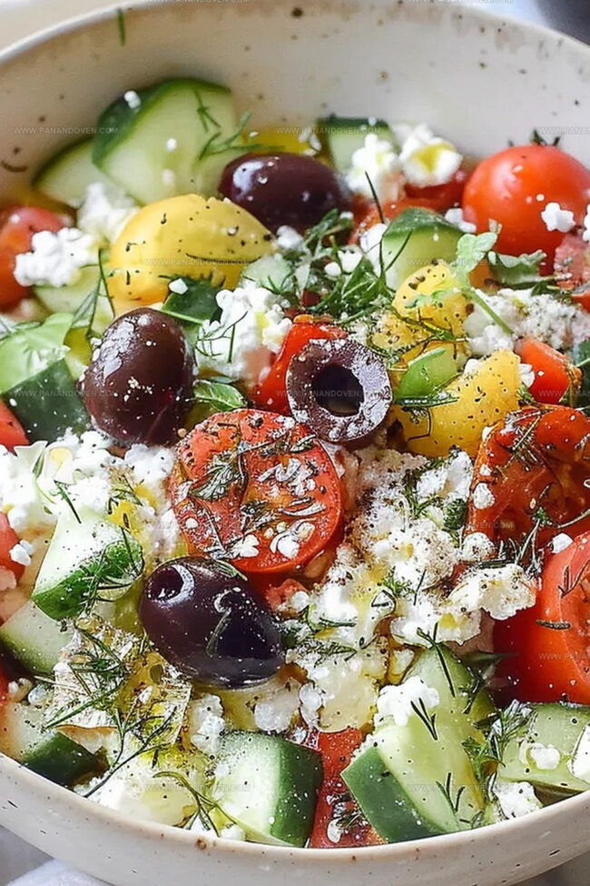 Greek cottage cheese salad blends Mediterranean flavors with creamy textures. Fresh ingredients and zesty herbs create a light, refreshing dish packed with protein and classic Greek elements.