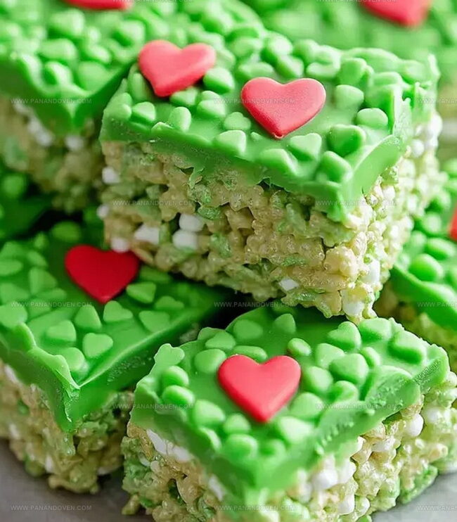 Grinch rice krispie treats blend festive green marshmallow magic with classic holiday cheer. Whimsical dessert squares deliver sweet nostalgia and playful Christmas spirit you can savor and share.