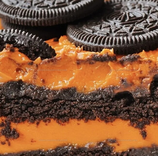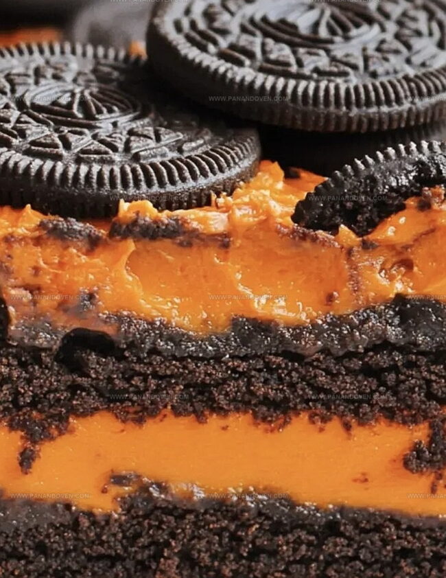 - Sprinkle crushed Oreo cookies over the top for added texture and Halloween-themed appearance.