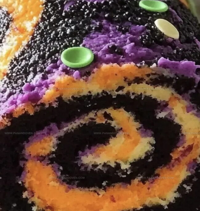- Embellish the cake roll with dark frosting in black or purple tones. Enhance visual appeal by scattering Halloween-themed sprinkles and edible decorative elements.