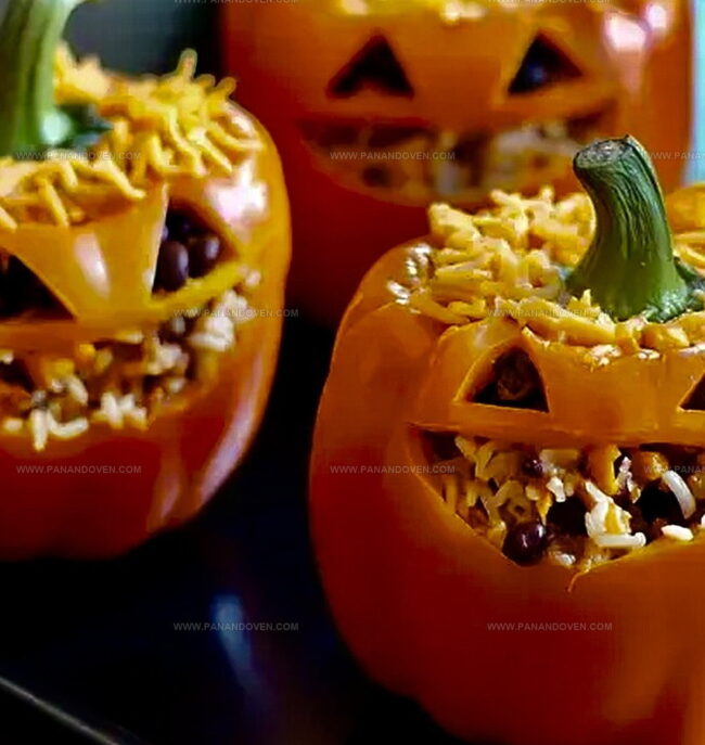 - Present these whimsical jack-o-lantern peppers as a festive, themed dinner centerpiece that delights both eyes and palate.