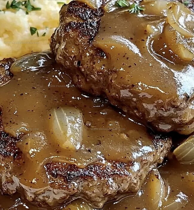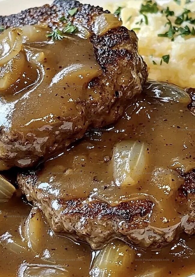 Juicy hamburger steaks swimming in rich onion gravy create a comfort food classic that never disappoints.