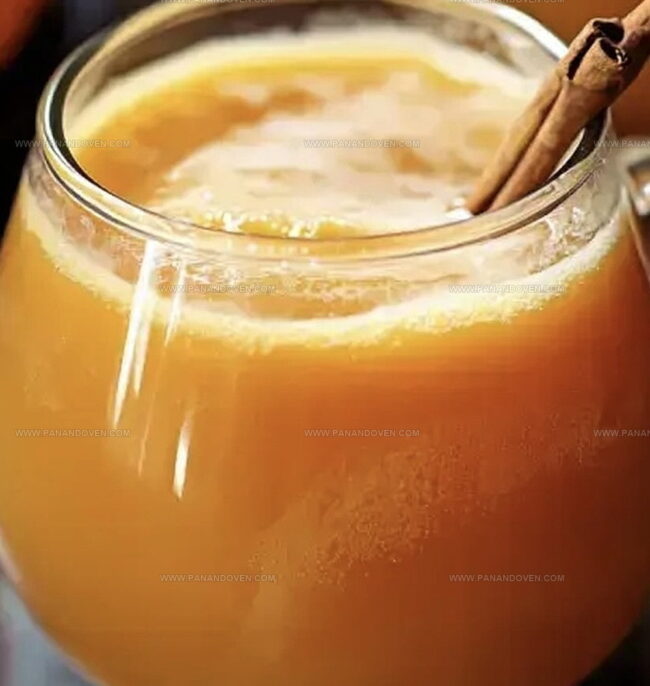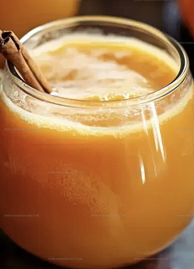 - Pour apple cider and pumpkin puree into a spacious pitcher, creating a vibrant orange-hued base for this enchanting beverage.